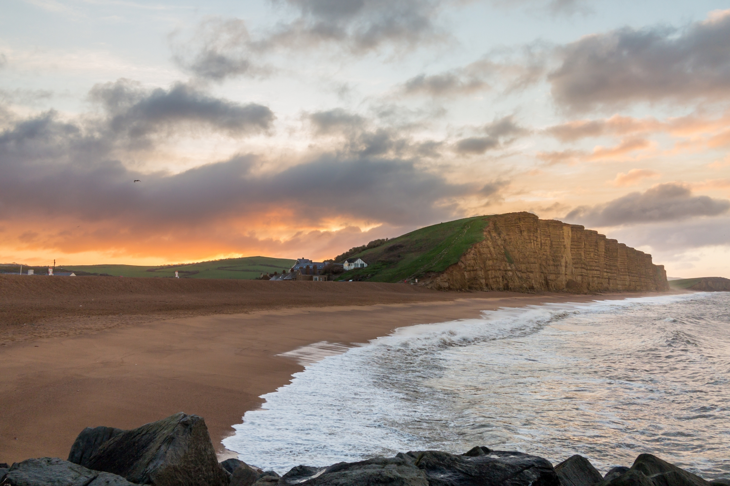หาดที่โด่งดังจากซีรีส์ Broadchurch มีหน้าผาหินทรายสีทองทอดตัวยาวขนานกับทะเล เป็นจุดถ่ายรูปยอดนิยมของสายซีรีส์และคนรักวิวธรรมชาติ ที่นี่สวยมากโดยเฉพาะยามเย็นที่แสงตกกระทบหน้าผา