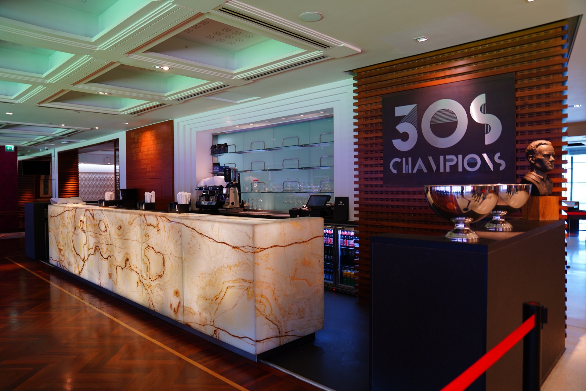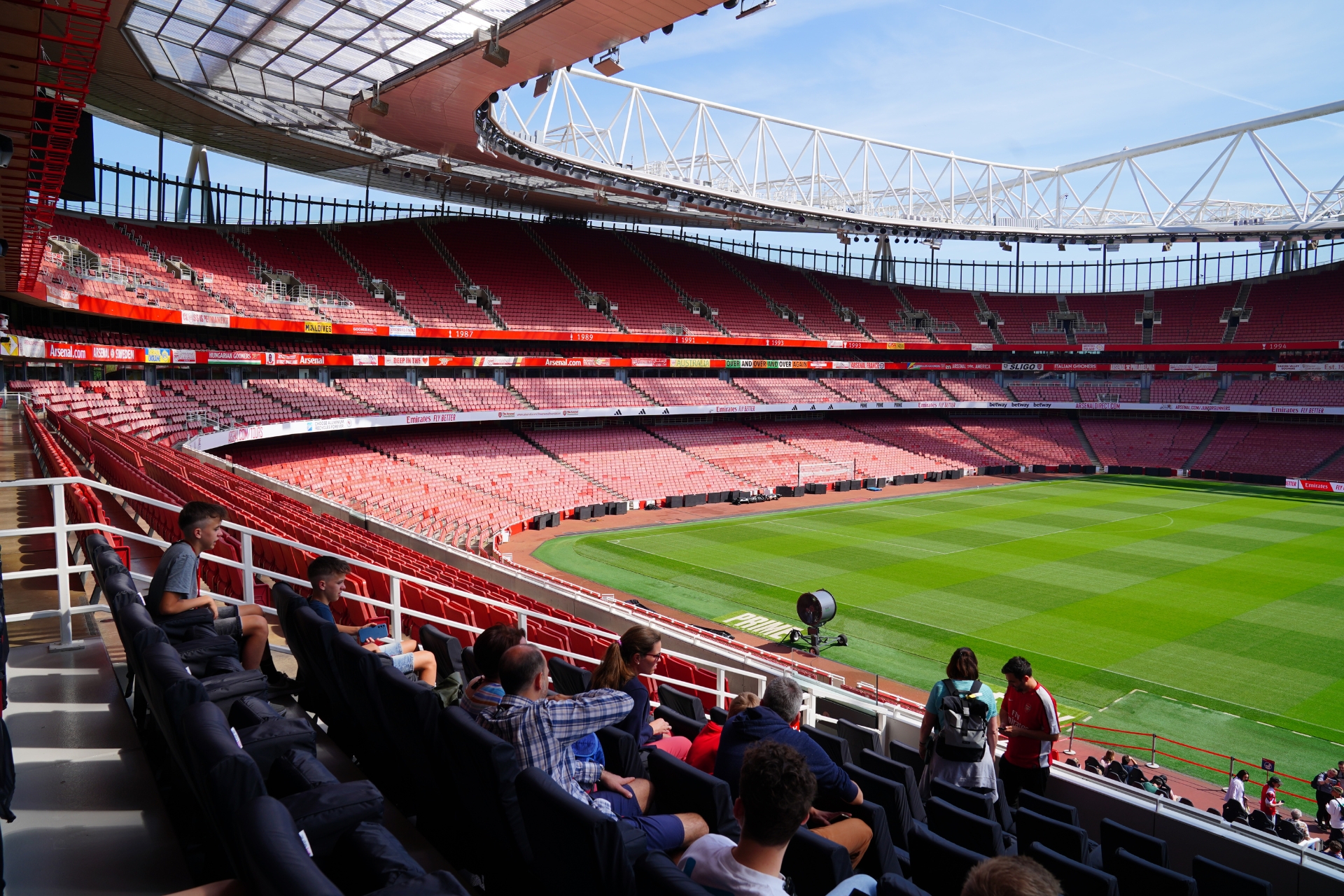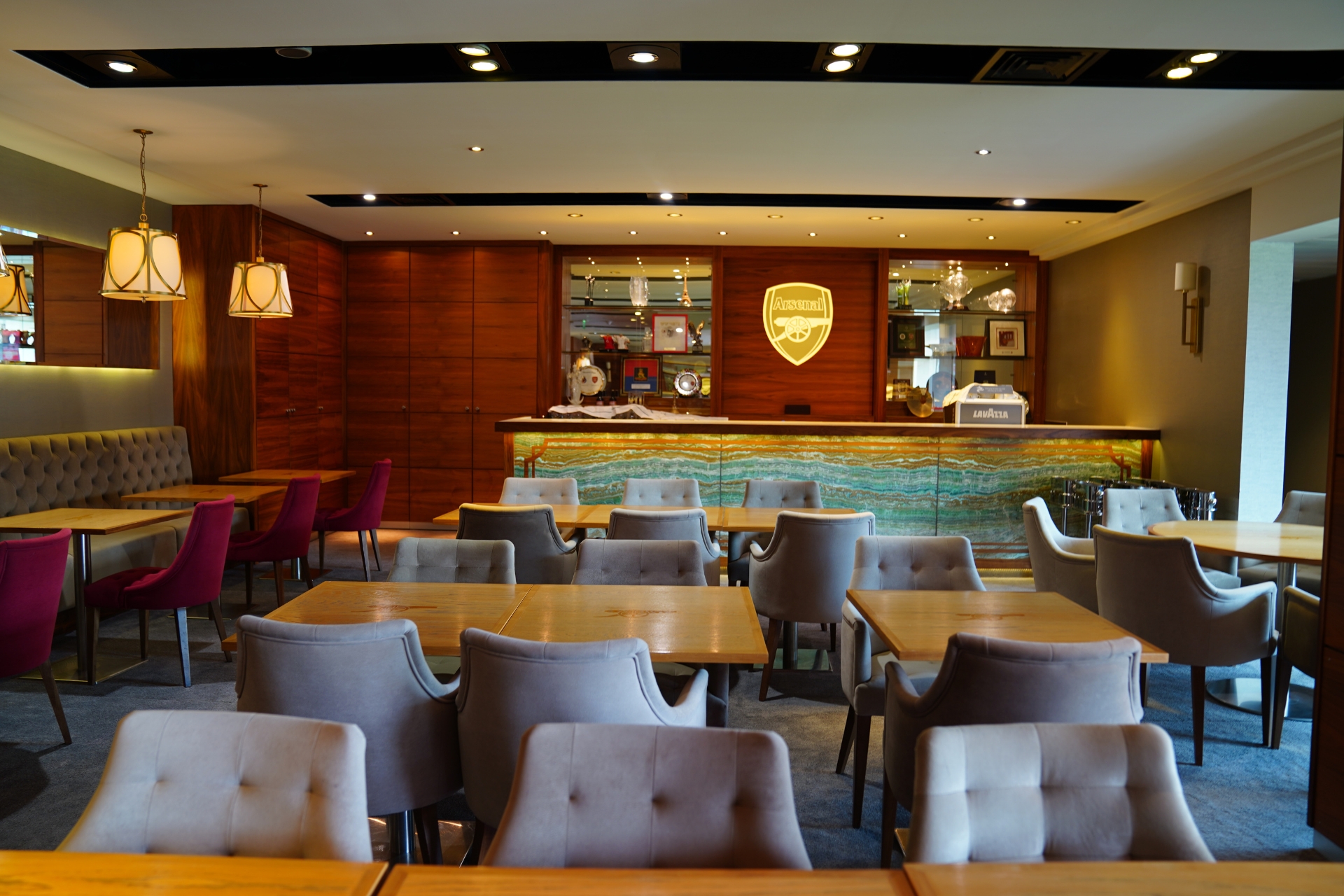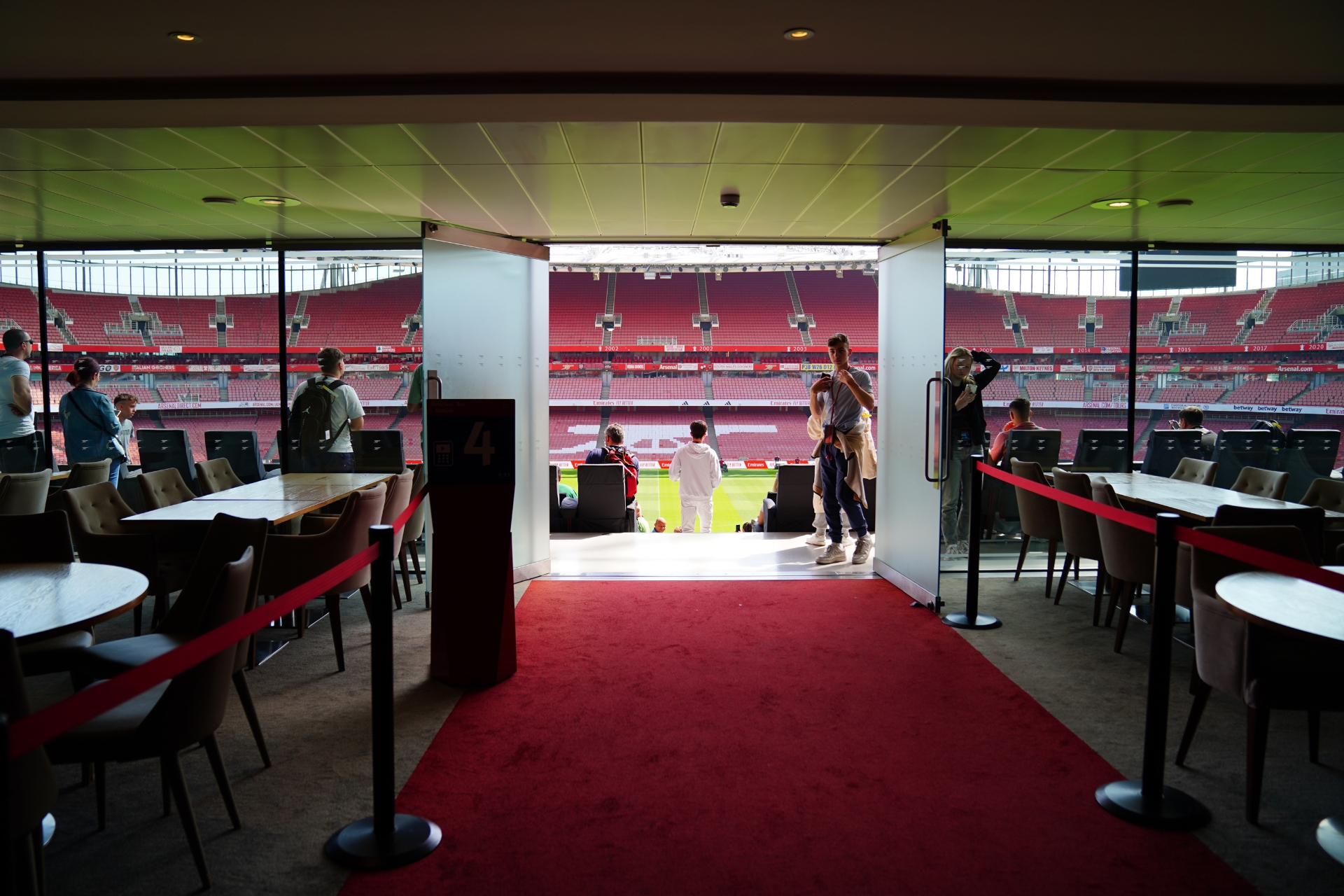 การทัวร์สนามของอาร์เซน่อลจะเป็นรูปแบบเดินชมด้วยตัวเองครับ ไม่มีไกด์นำทัวร์เป็นคณะ แต่จะมีจุดเช็กพอยต์ให้เราเดินตามไปทีละจุด ข้อดีคือสามารถใช้เวลาในแต่ละจุดที่เราสนใจได้อย่างเต็มที่เลยครับ หลังจากเดินเข้ามาแล้วเราจะมาโผล่ที่บริเวณอัฒจันทร์ชั้นสอง ซึ่งเป็นโซนที่นั่งของเลานจ์ต่างๆ ภายในสนามครับ